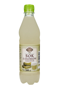 Skład: Sok z ogórków kiszonych (ogórki, woda, sól, przyprawy).