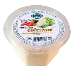 Skład: Kapusta biała, dressing colesław, cukier, cebula, sól, marchew, kwas cytrynowy.